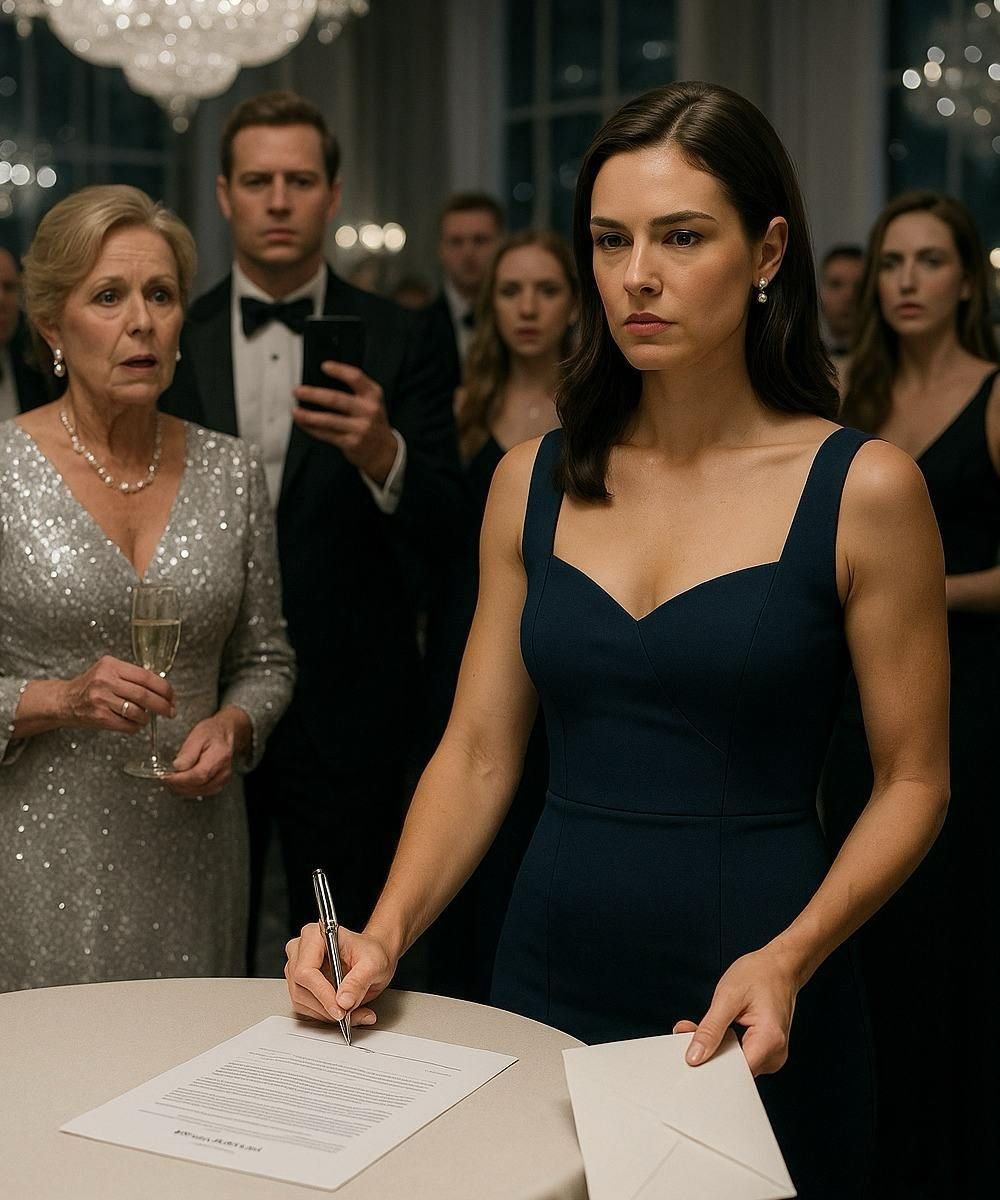 The ballroom shimmered with gold that night, its chandeliers casting a warm, deceptive glow over laughter and champagne. My husband’s family filled the long