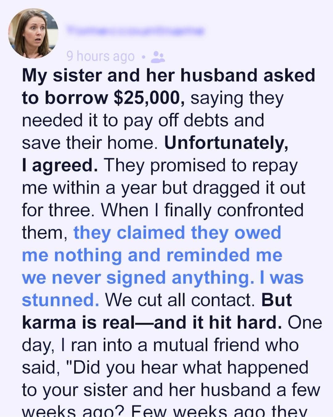 My sister and her husband asked to borrow $25,000, insisting they needed it to pay off debts and save their home. I hesitated—money and