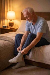 For older adults who struggle to fall asleep, wake up often, or experience nighttime leg cramps, wearing lightweight socks to bed may help. Soft, clean socks maintain warmth throughout the night and prevent sudden chills that can interrupt sleep. It is a gentle, medication-free way to support deeper, more restful sleep.