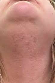 More hair growth on the face, particularly on the chin and jawline