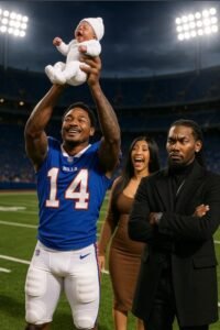 In this lighthearted fictional moment, the stadium crowd burst into laughter when Stefon Diggs decided to turn a simple interaction into an unforgettable spectacle. With the kind of playful confidence he brings to the field, he gently lifted Cardi B’s newborn into the air as if he were celebrating a championship victory.…