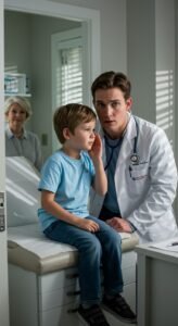 Once the door was closed, Dr. Evans lifted Leo onto the examination table. He made a game of it, letting Leo listen to his own heart with the stethoscope. “Okay, Mr. Lion, let me hear you roar,” he said, his voice warm and playful. Leo, who hadn’t genuinely smiled in weeks, let out a small giggle.