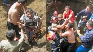 As Cristian descended, the crowd above held its breath, praying for a miracle. Moments later, the tension broke as Cristian emerged from the depths of the well, cradling the toddler in his arms.