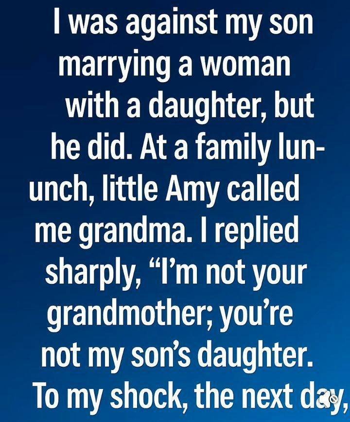 I Told My Son’s Stepdaughter “I’m Not Your Grandma.” What Happened the Next Day Broke Me—and Changed Our Family Forever I’m not proud of