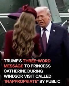 At the bottom of the steps, Prince William and Catherine, the Princess of Wales, were waiting. The next morning, King Charles officially greeted them. William was the first to move. He reached out his hand and spoke the customary courteous things that happen when someone arrives in a state. Catherine was next, and for a brief moment, the dance gave way to something more human: a warm smile, a compliment uttered over the sound of the helicopter idling, and a nod that said both the occasion and the woman’s flawless management of it.