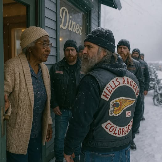 When she looked outside, her heart skipped a beat. There were 15 men in leather jackets with the Hells Angels Motorcycle Club’s recognizable logo on them standing in the snow.