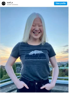 Now that Xueli is 16, she wants to tell people about albinism. She tells people to stop calling people with albinism “albino” and start calling them “a person with albinism.” This way, their diagnosis isn’t the only thing that defines them. She wants everyone to know that albinism is a hereditary disorder, not a curse or something else strange.