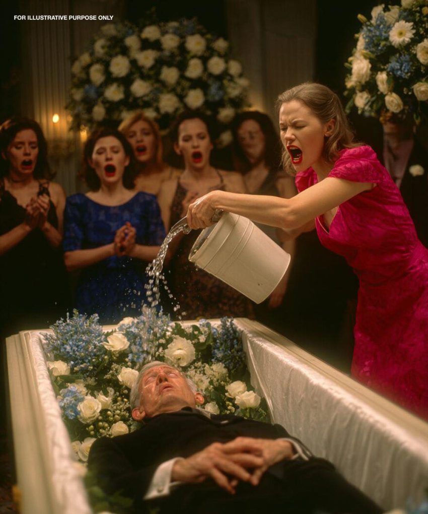 No one spotted it at first. They believed it was a private ceremony or something that meant anything. But when she got closer to the coffin, she held on tighter. Her face stayed blank, and she kept looking at the man inside.