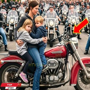 Lily, who was four, climbed onto the shredded leather seat behind them and bounced up and down, giggling as if the bike was already rumbling under her.