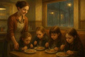The first night Emily Parker saw them, it rained lightly over the small settlement. Four little people were crammed together outside the diner where she worked the late shift. Their clothes were torn, their skin was pale, and their eyes were so hollow that only hunger could make them seem that way. Seeing it made Emily’s heart break. She knew they didn’t have a warm bed to sleep in or parents waiting for them at home.