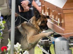 One officer got down on one knee, took off his helmet, and laid a hand on Bolt’s back. The man said, “He was the best of us.”