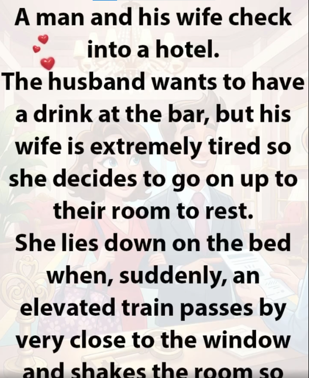 The husband wants to go to the bar for a drink, but his wife is quite tired, so she decides to go to their room and sleep.