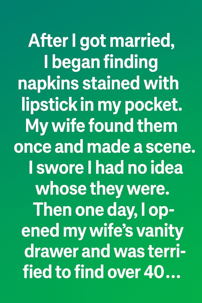 I kept finding napkins with visible lipstick stains on them every week. Some were folded perfectly, while others were crumpled up in the corners of my pockets. The lipstick marks were a bright, deep crimson that I couldn’t miss every time. The first few times, I told myself it was just a strange coincidence. But the trend got too common too quickly. You could always see the stain since it was new. Always the same color.