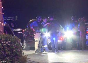 According to the police, shots were fired from a building window while policemen were hurrying to the apartment complex.