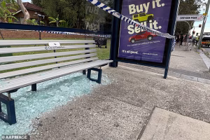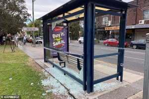 After the incident, there was broken glass at a bus stop in Croydon Park.