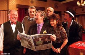 In the middle of the picture is Patrick, with David Jason as Del Boy on the right and Nicholas Lyndhurst as Rodney Trotter on the left.
