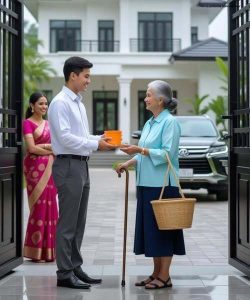 When Dolores got to the gates of her son’s huge house, her clothing were wet from the rain and her shoes were muddy. There was a shiny automobile in the driveway that showed how successful she had always hoped he would be.