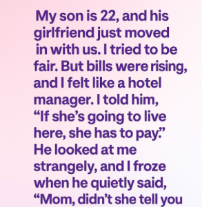 “If She’s Going to Live Here, She Needs to Contribute”—Then My Son Said Something That Left Me Speechless. How One Mother’s Assumptions About Her Son’s Girlfriend Led to a Humbling Discovery About Judgment, Communication, and What Family Really Means