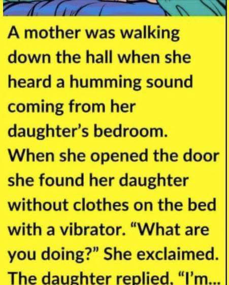 The house seemed oddly quiet that afternoon. The mother went about her normal tasks, picking up laundry and cleaning up as she went. The hallway windows let in sunlight. As she passed past her thirty-five-year-old daughter’s room, a small humming sound broke the silence. It was steady, repetitious, and strangely like a machine. She stopped and scowled. She was curious if the ceiling fan was acting up again or if her daughter had finally decided to clean.